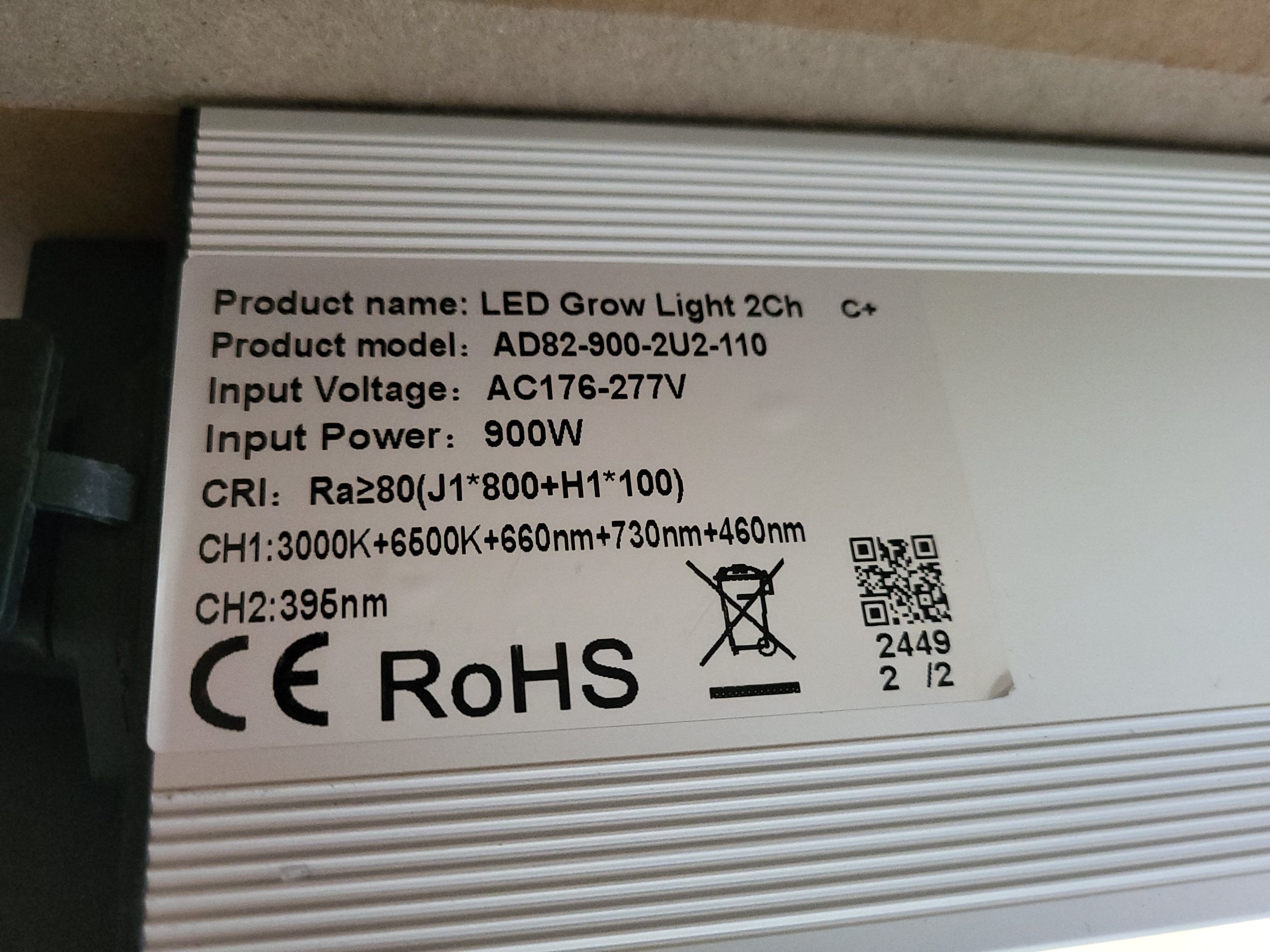 | Light Spectrum | Warm 3000k + white 6500K + red 660nM + blue 460nM + far red 730nM + purple 395nm (UV) |